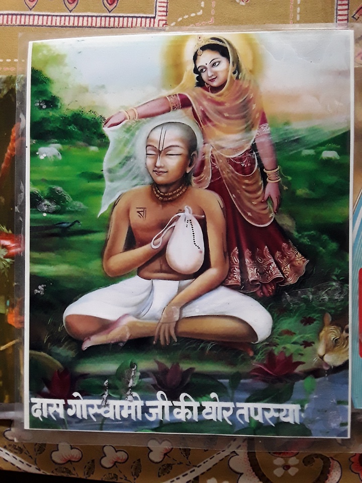 [holding a blade of grass in my teeth, I pray repeatedly that I may become a particle of dust of the lotus feet of Srimad Rupa Goswami].